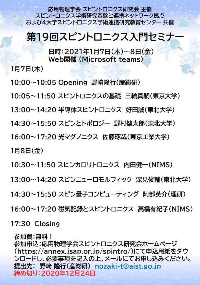 第19回スピントロニクス入門セミナー
