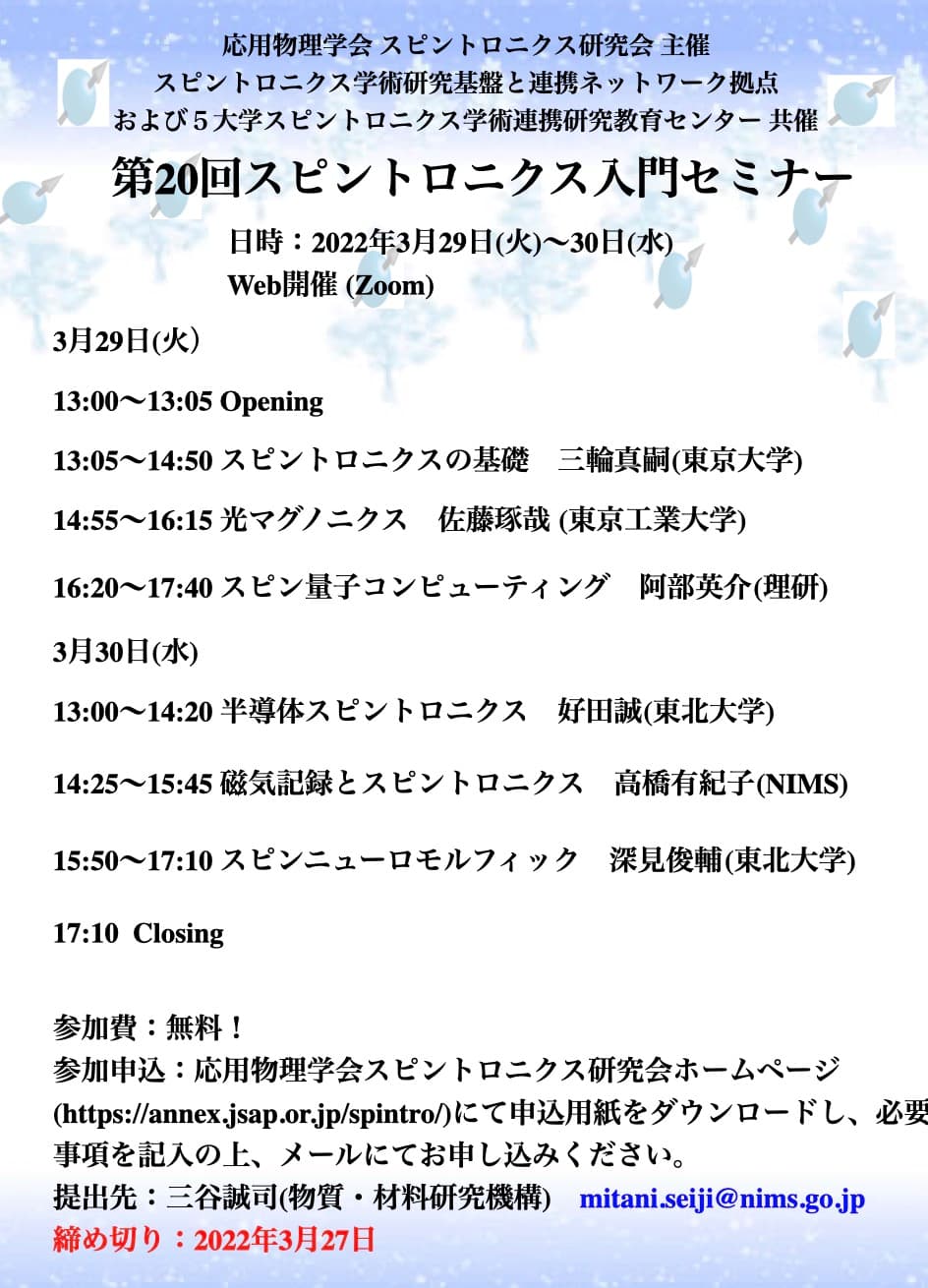 第20回スピントロニクス入門セミナー