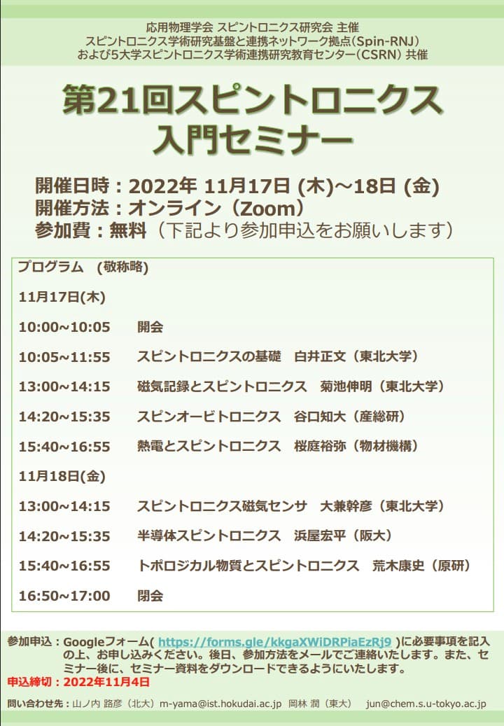 第21回スピントロニクス入門セミナー
