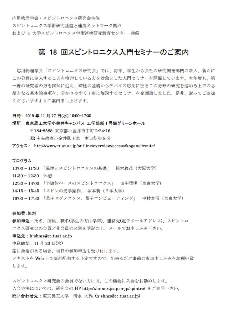 日本磁気学会スピンエレクトロニクス専門研究会 共同主催研究会