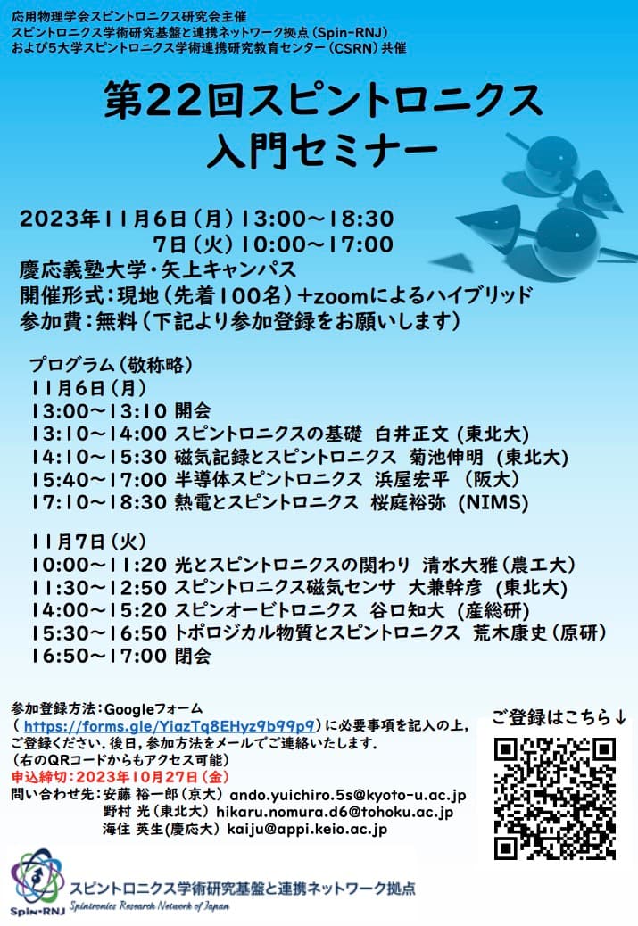 第22回スピントロニクス入門セミナー